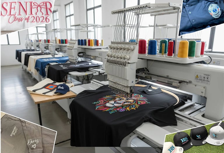 From embroidery and DTF printing to large-format vinyl and full-scale fulfillment, every order is produced, packed, and shipped with precision.