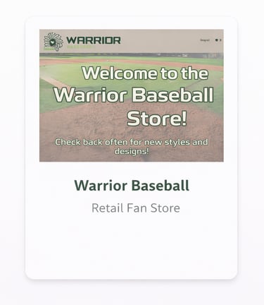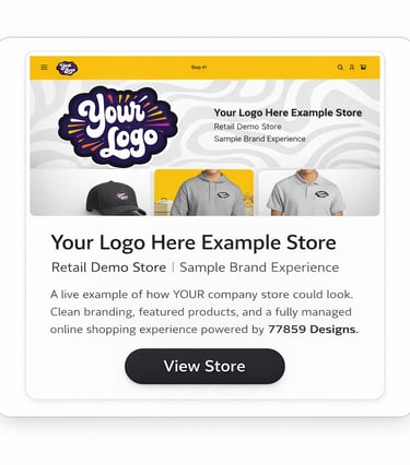 A curated portfolio showcasing active company and retail stores powered by YOUR Merch2Market, produced by 77859 Designs.